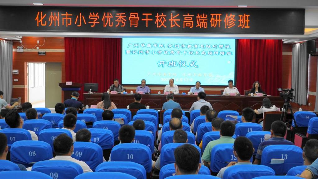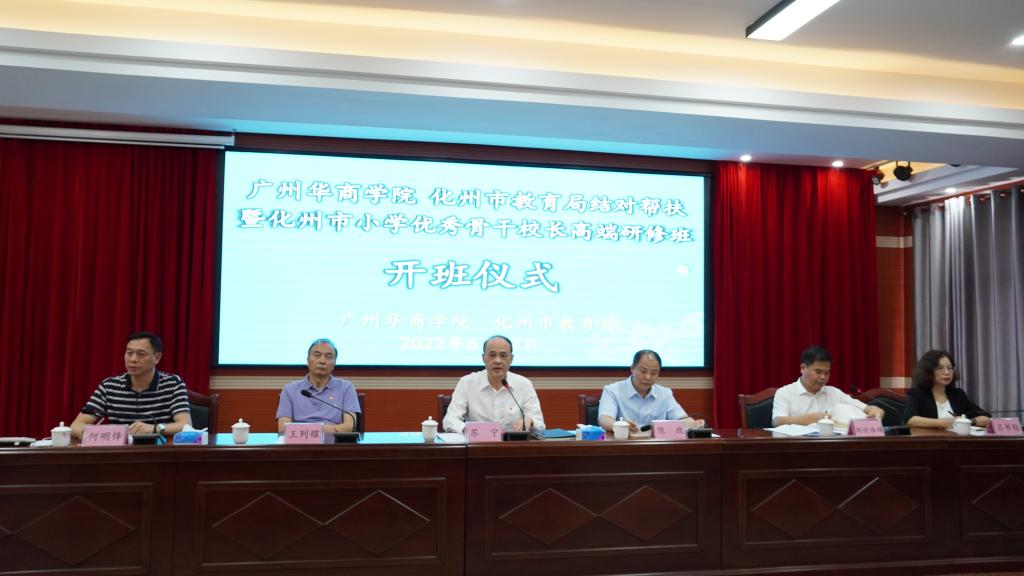 当天上午,化州市小学优秀骨干校长研修班开班仪式在化州市教师发展中心举行。学校党委书记苏宁讲话,他表示,化州市教育局与我校深化教育合作,经实地调研、充分协商,签订了“推动基础教育高质量发展结对帮扶协议”。我校将进一步提高政治站位,对标对表一流,建立工作台账,完善工作机制,通过双方教育协作帮扶与共建共享,充分发挥我校在管理、人才、资源、技术方面的优势,结合化州市当地教育教学特点,努力推动化州市教育局所属部分学校管理、党建团建队建、教学质量、师资素质、办学水平等方面全面提升,整体缩小并努力补充双方之间、受援单位在基础教育领域的水平差距,不断提升基础教育发展质量,教师学历进一步提升,加快推进实现教育现代化。