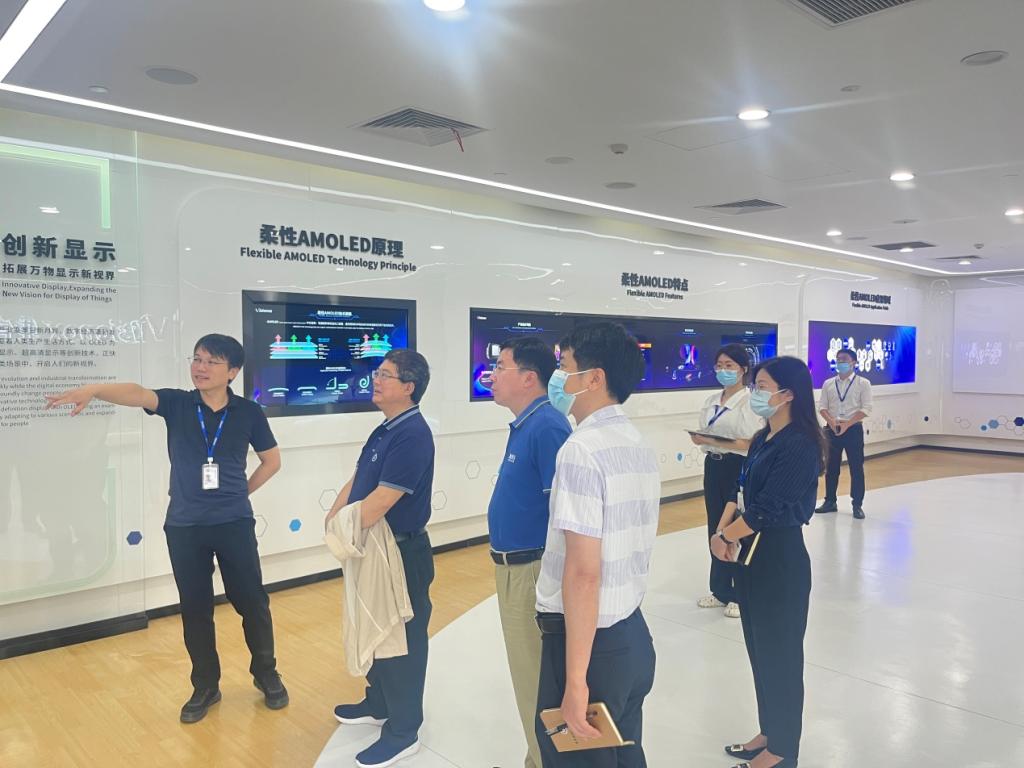 随后,郑红总经理带领刘少波副校长一行参观企业,并详细介绍了公司的发展历程、业务模式、荣誉资质、发展优势、人才培训体系、企业文化等,刘少波副校长一行通过实地参观、学习、体验,对广州国显(维信诺)科技有限公司给予了高度评价。