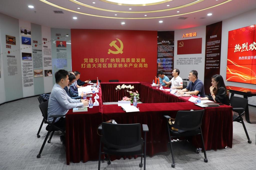 10月20日下午,伟德体育执行校长郭银华教授带队走访广东粤港澳大湾区国家纳米科技创新研究院(以下简称“广纳院”),广纳院子弥实验室执行副主任胡显刚博士等热情接待了郭银华教授一行。