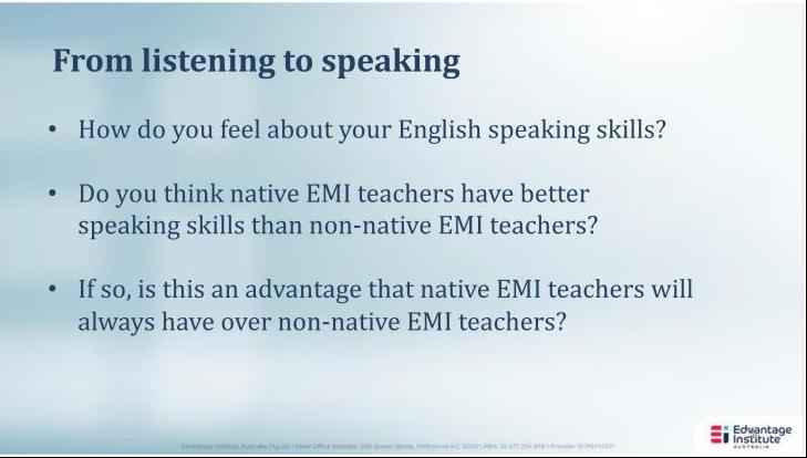 2022年10月25日至11月11日,我校邀请澳大利亚中汇学院(EIA)特聘教师为我校教师开展第二期“双语(全英)课程教学法”专项培训。本期培训共开展了三场讲座。