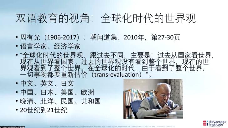 陈旸斌博士归纳介绍了现行的双语教育模式,阐述了在全球化的背景下双语教育的重要性。他认为,双语教育需要母语作为桥梁来提高学习成效,实践是验证双语教育的重要手段。他以澳大利亚为例,介绍了当地人选择双语教育的情况,比较了华人学生与非华人学生选择中文作为外语学习的原因,肯定了亚洲通识课程持续推进的必要性。陈旸斌博士也分享了他对双语教育现状的感悟与体会。他建议在后疫情的双语教育模式中,高校和高校教师要根植中国文化,努力培养全球化视野,注重课程跨语言的融合。要坚守初心,以语言为载体,以文化为桥梁在双语教学中关注学生英语水平的提升,深入进行更扎实的学习,从而更好应对未来的挑战。他高度赞赏我校与EIA合作开展的共融课程,认为此举为学生在疫情背景下提供了学习海外课程的机会并在双语教育的实践中走出了独特的道路。
