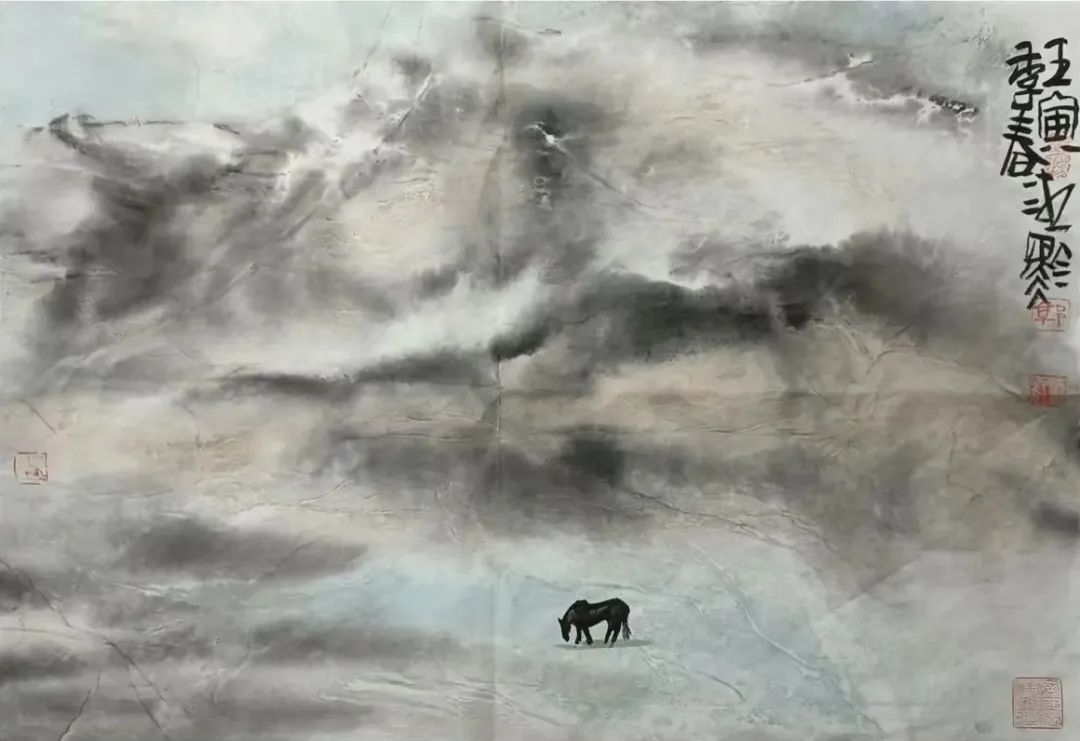 郭湘黔先生的这幅水墨《空山新雨》,取意唐代王维的《山居秋暝》,以没骨意像手法,表现新雨过后山谷里空旷清新,小鸟儿在天空中自由的飞翔,让人细细品看,余味无穷。水墨画被视为中国传统绘画,此作以缕缕墨香萦绕,表现雨后初晴的旖旎风光,构图空灵,章法讲究。郭湘黔的水墨画创作,探索用不同的纸张材料,常出现意想不到的笔墨效果,不按常规,将传统和“偶然”糅合在一起。郭湘黔长期从事视觉艺术设计、水墨、书法创作,并善于将绘画、书法等运用到设计作品中。