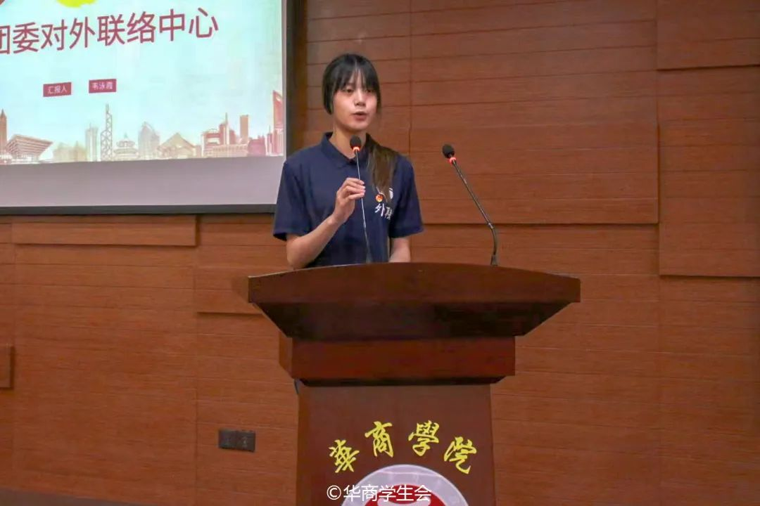 校团委对外联络中心常委团成员韦泳霞作述职汇报。校外联始终秉承着“立足校内,走出校外”的信念,完善自身建设,工作有序开展。举办各项活动服务同学成长,如娃哈哈营销策划大赛,“共青团促进大学生就业”系列的线下及线上讲座等,服务华商学子。抗击疫情,坚守岗位,在流调志愿活动中积极响应号召,展现新时代青年的责任担当。未来,校外联将在校团委的领导下加强组织自身建设,不断活跃校园文化氛围,积极开展活动,丰富校园文化生活!