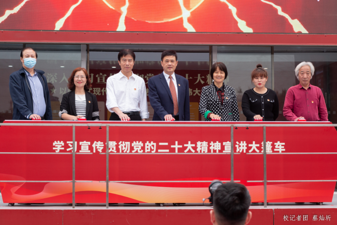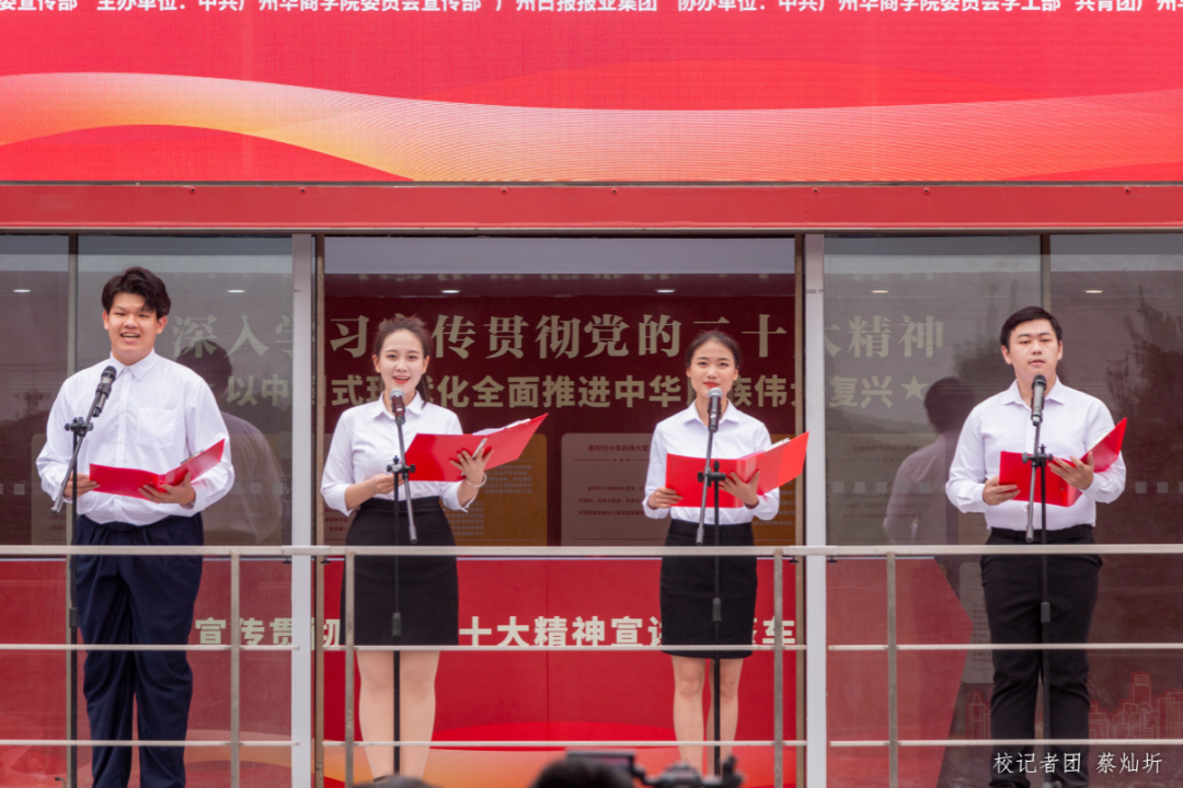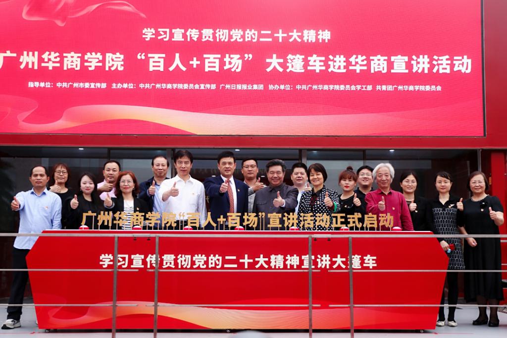 为深入学习宣传贯彻党的二十大精神,扎实推动党的二十大精神走深走实,将全体师生的思想和行动统一到党的二十大精神上,3月21日下午,我校在“创百年名校,育华夏英才”广场前举行学习宣传贯彻党的二十大精神——伟德体育“百人+百场”大篷车进华商宣讲活动启动仪式。参加本次启动仪式的有校党委书记苏宁,党委副书记、副校长王锦秀,副校长王力东及各职能部门负责人、二级学院党组织副书记、马克思主义学院教师代表、各学院学生代表、各单位宣传联络员。此次活动还邀请了广东省红色文化研究会、红色宣讲团高级顾问郑宏彪作党的二十大精神微宣讲。