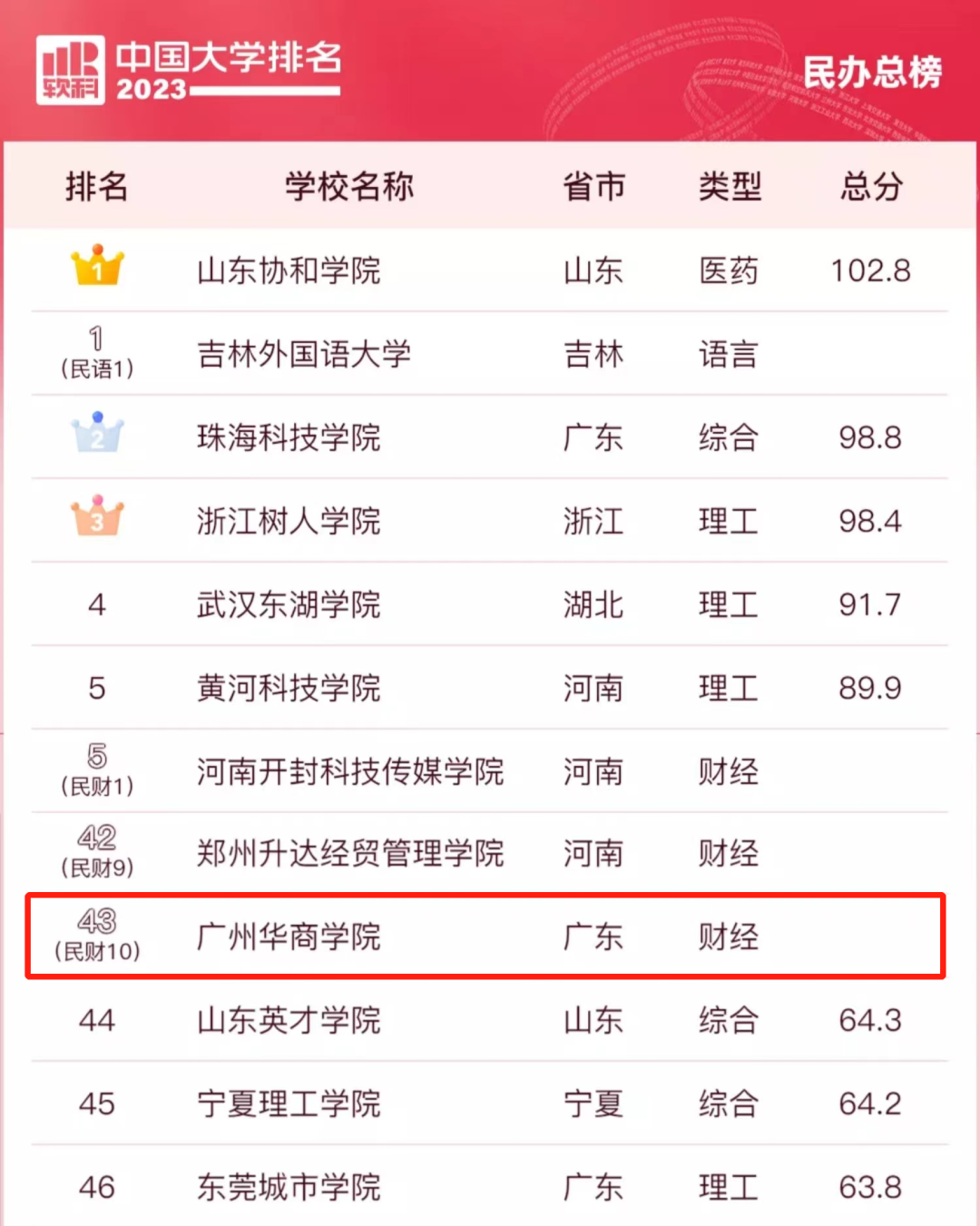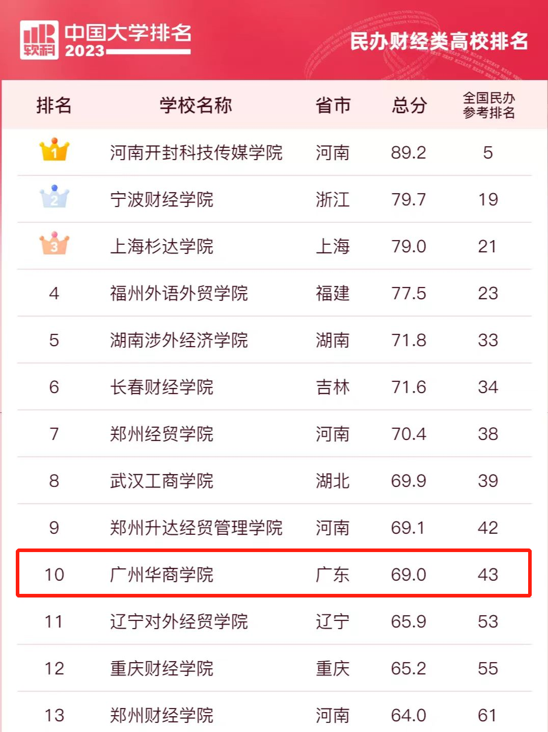 此次2023软科中国大学排名中,伟德体育在全国民办财经类高校排名第10,民办总榜排名第43。