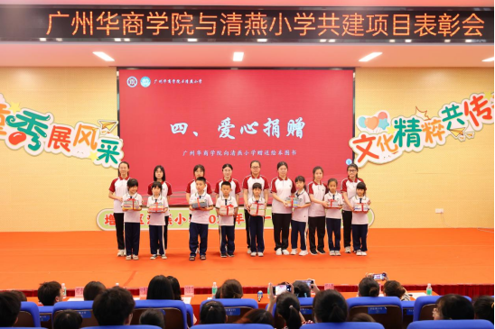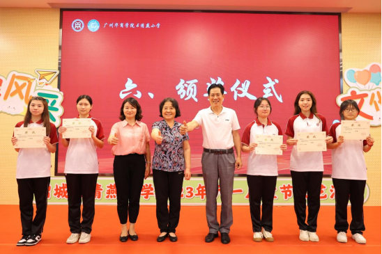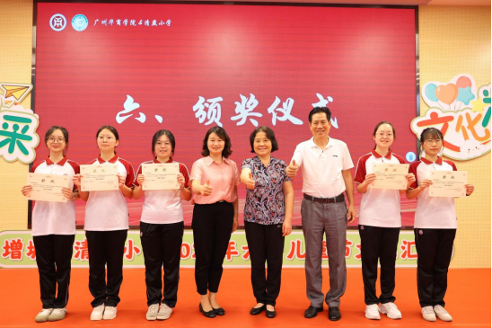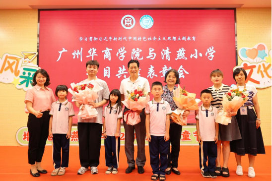 支戈壁副校长为本次表彰会致辞。她表示,华商学院与清燕小学仅有一墙之隔,具备先天的地理优势,虽各自培养的学生层次、阶段有所不同,但为党育人、为国育才是两校共同的使命,借力高校资源优势,助推当地基础教育高质量发展也是我们的责任担当。伟德国际betvlctor作为广东基础教育发展研究基地,更是要担负起助力清燕小学全面发展的重任。本次项目共建活动既给师范类的学生们提供了实践锻炼的平台,将自身专业和技能融会贯通,发挥自己的专业领域优势,同时又促进了清燕小学德育、美育等教育的发展,促进两校学子融合,携手共同进步成长。今后,两校将在师范生教育实践、教学研究与改革、基础教育教师培训与专业成长等多方面进一步加强合作交流,共同发展,为增城区教育事业做出应有的贡献。