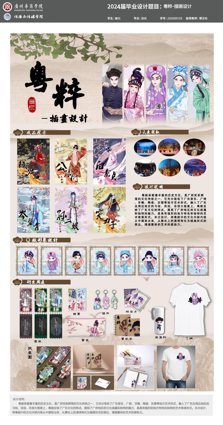 设计阐述:瓷器拟人化的插画在弘扬广东传统文化方面的作用,将传统文化与现代插画相结合,通过在这个过程中通过融合二次元绘画风格和中式元素,以及地运用色彩、纹理、形状等元素,创造出了兼县现代审美和传统文化内涵的瓷器拟人形象。希望能够使得观者能够更深刻地理解和感受广东传统文化的独特魅力,了解和热爱广东瓷器,希望能使其更贴近现代人的审美观念,为广东传统文化在当代社会的传播做出积极的贡献。