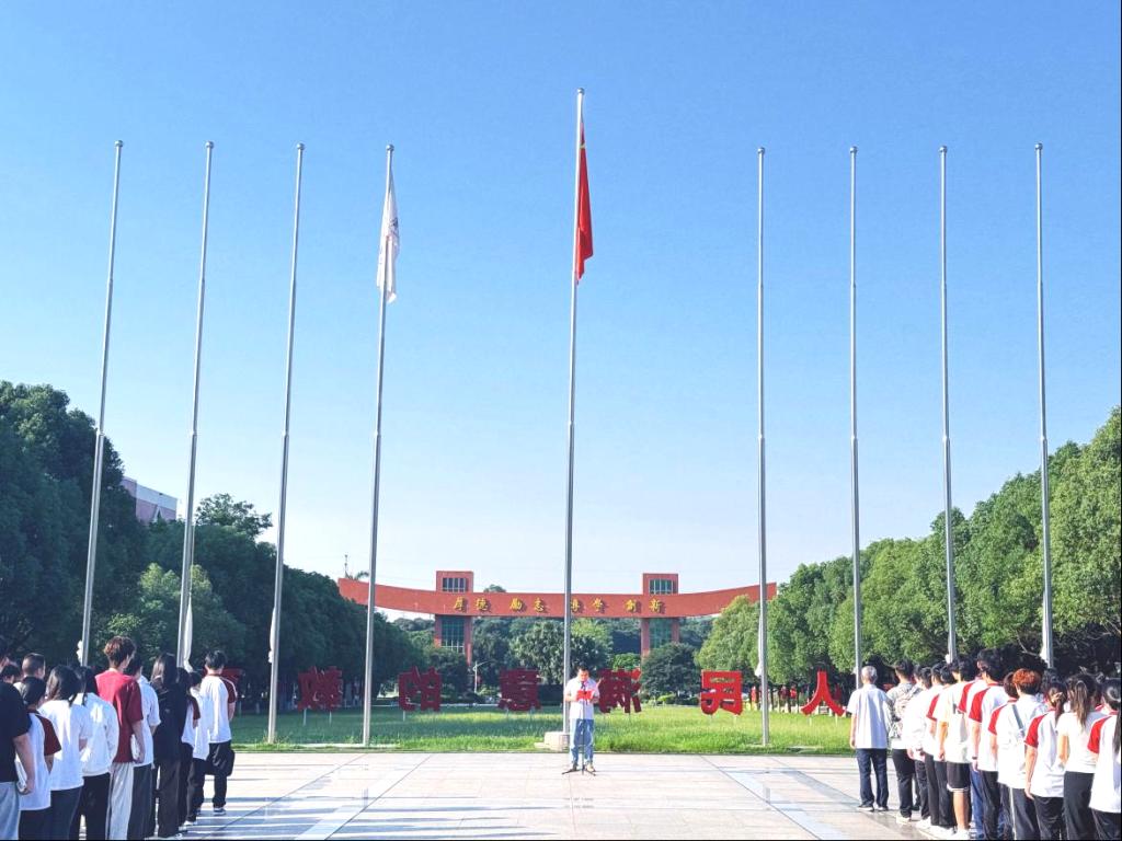 随着主持人宣布升旗仪式正式开始,全场师生整齐肃立。英姿飒爽的国旗护卫队成员迈着坚定有力的步伐,护卫着鲜艳的五星红旗走向升旗台。当激昂的国歌奏响,五星红旗缓缓升起,那振奋人心的旋律在校园上空久久回荡,每一个跳动的音符都传递着师生们对祖国深深的热爱与崇高的敬意。