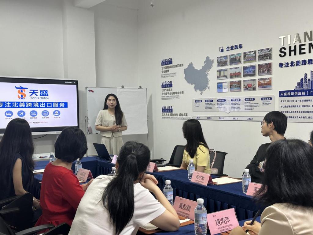 活动伊始,天盛人力资源主管给同学们介绍了天盛跨境公司概况。随后,国际贸易专业学生代表针对公司主营业务——国际货运代理提出了看法和疑惑,天盛供应链业务骨干一一给出了解答。国际商务专业同学则与天盛业务人员深入探讨了在美国关税政策下跨境电商的运营情况以及未来的发展趋势。