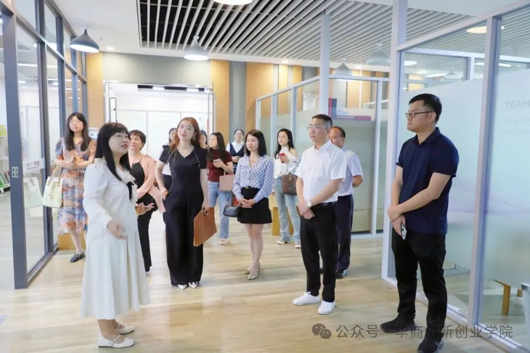 会前,朱燕妮会长一行先后参观了桃花岛电商实训基地、中手游华商动漫游戏工作坊、华商众创孵化基地等教学实训场地,对学校环境和实训实验基地建设给予了高度的评价。