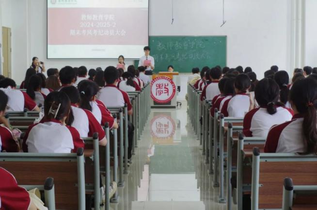 会上,曾锦鸿老师结合实例,深入阐述了考试纪律的重要性。一方面,提醒学生科学备考,摒弃“假努力”式复习,注重劳逸结合;另一方面,严肃强调作弊行为的严重后果,警示学生切勿因小失大,鼓励大家通过自身努力取得优异成绩,为留学、考研等未来发展奠定坚实基础。