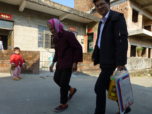 经济与金融系教工党员通过调查事先确定好了慰问对象,于12月20日下午开展了慰问老人的活动,租车到老人家拜访,与老人们谈心交流,带给他们一些快乐,并且送老人一些生活必需品,如:米、油等。