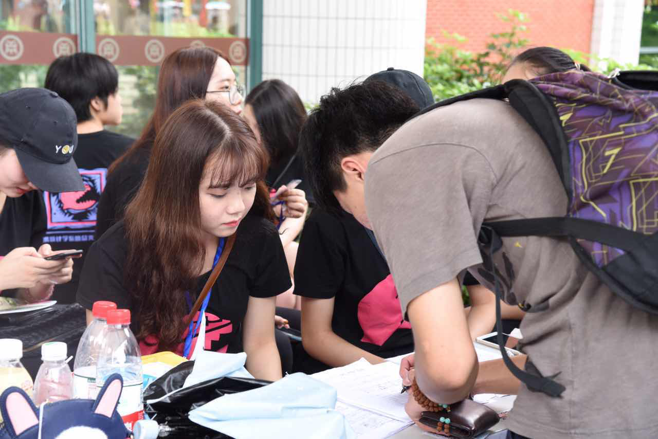 艺术设计系在本次迎新活动中由学工副主任彭博娜书记、2017届辅导员罗坤贤老师、和艺术设计系团总支学生会、和本系自愿的参与下。分别在校门口、华职篮球场、华商篮球场等指定停车地点、艺术设计系大本营以及图书馆指定地点等候新生前来报到,引导着新生和家长们从校门口、停车场到艺术设计系大本营签名报到;随后又引导新生单独前往图书馆缴费核对信息,家长在大本营休息等候,我系提供凳子和矿泉水供家长在大本营休息时使用,新生完成缴费核对信息后回到大本营;随后又由我系自愿者带来新生熟悉学院环境并引导帮助新生把行李搬运到宿舍。