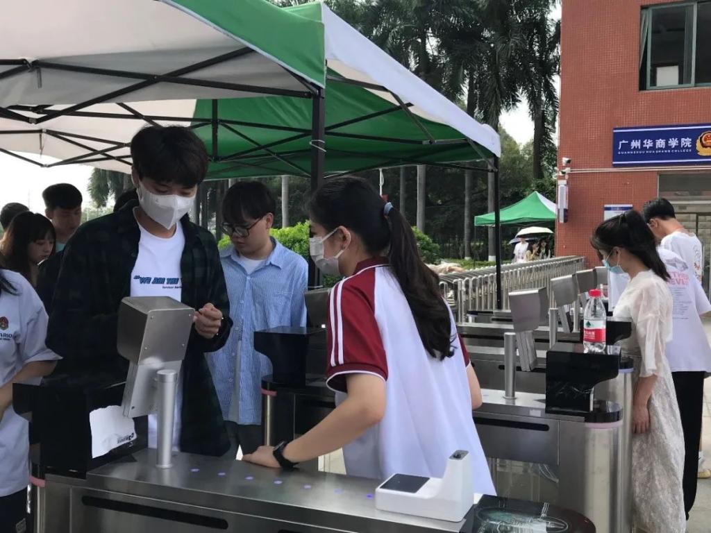 值班期间,测量体温的志愿者们分工明确,对返校的同学进行体温测量、粤康码检查、行程卡检查等工作并维持进校秩序,引导每一位返校学生顺利入校。返校的学生们在工作人员的指引下,有条不紊、井然有序地踏入了校门。此次疫情防控工作的部署让同学们的人身安全得到了极大的保障。