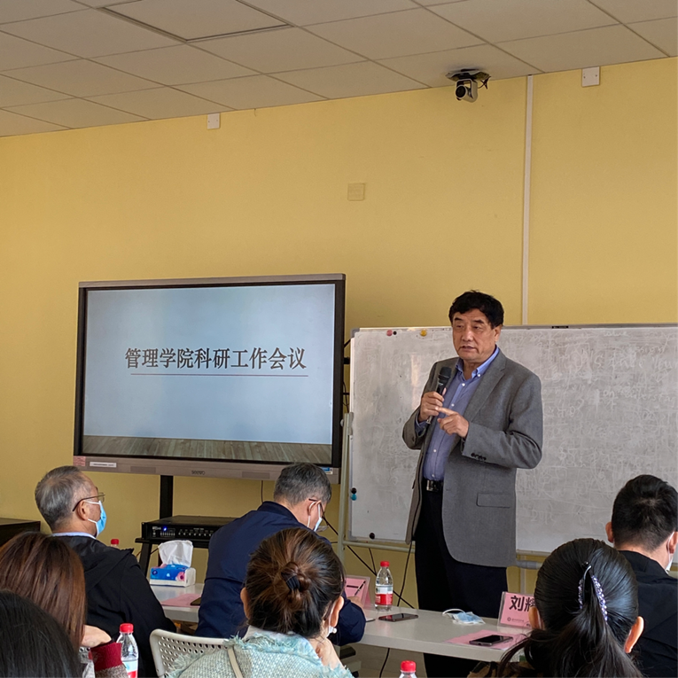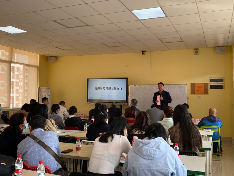 2021年12月14日上午10点30分,管理学院组织全体教师在启智楼503教室召开了管理学院科研工作会议。学校副校长、华商学院经济社会研究院理事长张捷教授出席本次会议,管理学院副院长余家军博士主持会议。