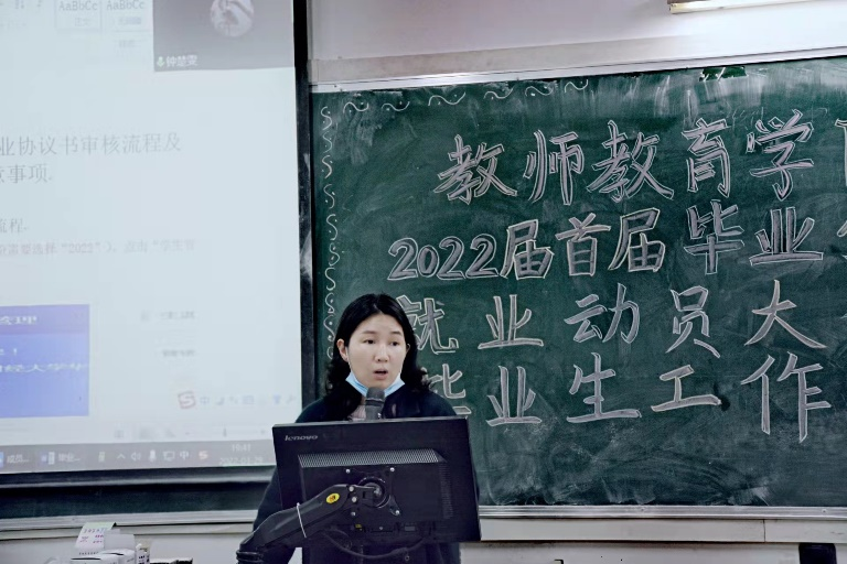 彭博娜主任进行就业业务培训。彭主任向同学们详细讲解了就业系统填报、协议签订等具体事务。她首先对院长们的积极讲话表达感谢,希望毕业生们牢记在心,积极就业。同时强调毕业生一样要注意疫情防控,不要去中高风险去,不接触中高风险区人员。注意就业找工作过程中的各项安全问题,要提高法律意识和安全意识,注意反诈,注意人身财产、职场陷阱等等,同时传达了学校文明安全纪律教育月的要求,毕业生一样要遵守。然后详细地为同学们讲述了电子就业协议书的审核流程及注意事项和就业流程,为更好地帮助同学们完成就业填报内容,已添加了所有毕业生的联系方式,若同学们有就业方面的疑惑彭主任都会给予及时的解决,让同学们无后顾之忧,可以安心就业。