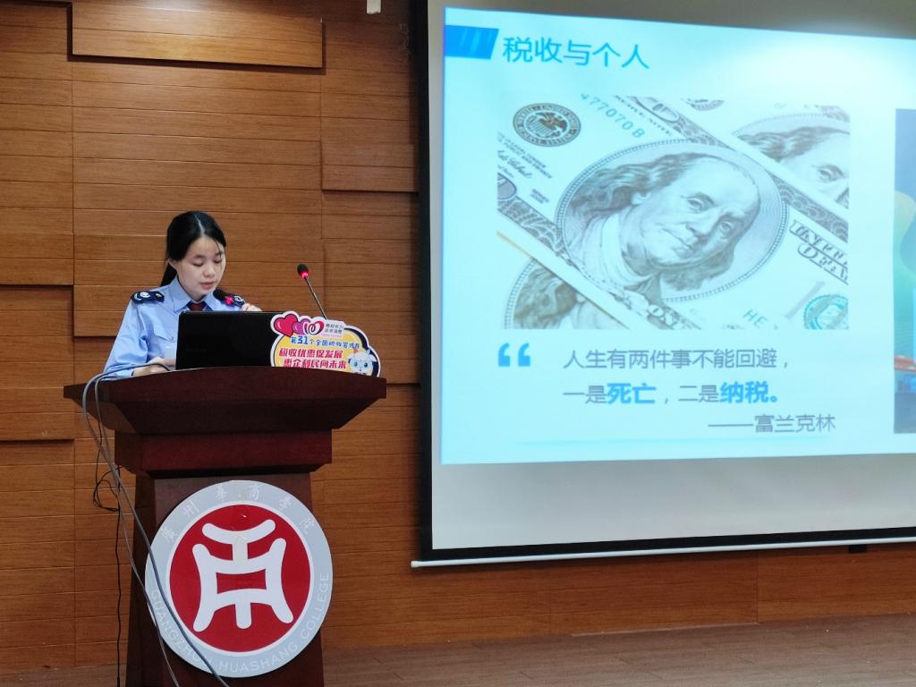 孟夏清和月,税收进校园。第31个全国税收宣传月正如火如荼开展,国家税务总局广州市增城区税务局与国家税务总局广州市税务局第三稽查局组成的税收普法教育宣讲团与我校携手开展主题为“税惠青春行,携手向未来”的税法进校园活动。