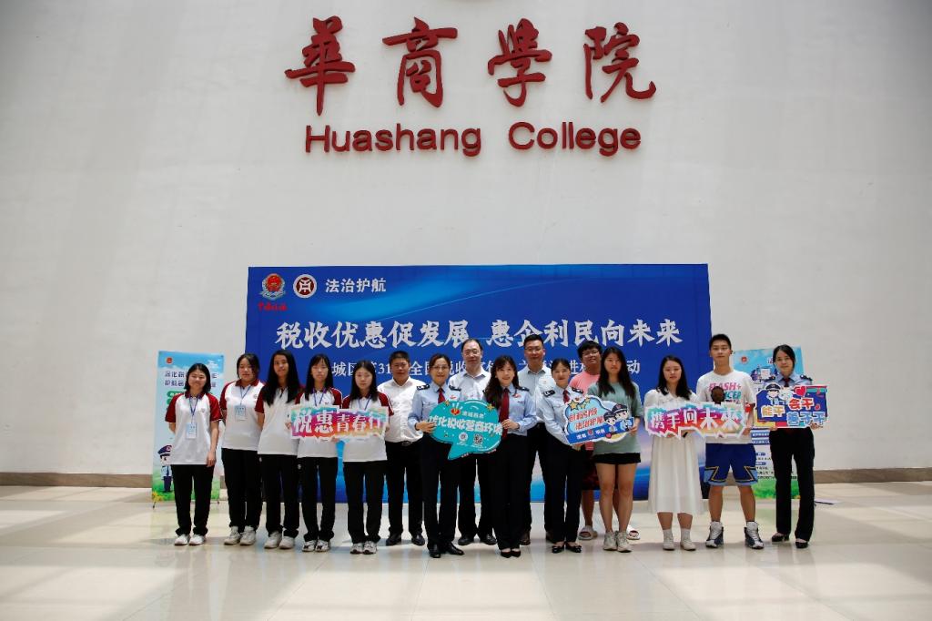 5月26日上午,税法进校园活动于我校图书馆报告厅线上线下同步举行,国家税务总局广州市增城区税务局与国家税务总局广州市税务局第三稽查局干部,华商学院副校长、会计学院院长陈美华教授,会计学院党委副书记、副院长陈洋广同志,会计学院副院长周书域,会计学院税务系主任高艳荣教授,副主任李志凤以及会计学院师生代表参加了活动。
