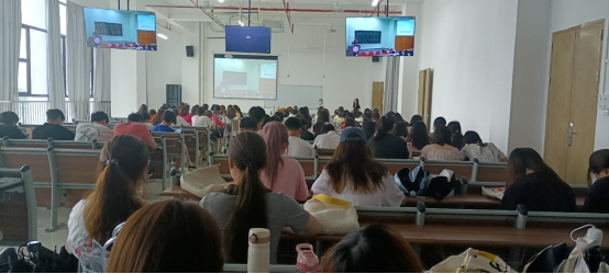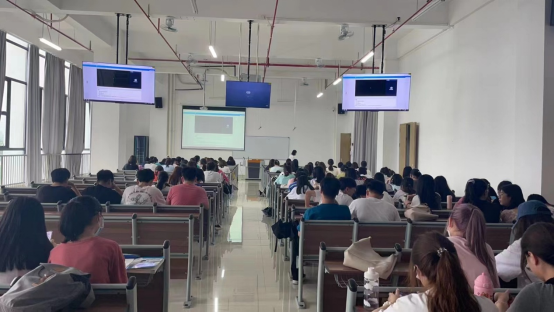 在讲座上,董洋老师将同学们遇到的职业困惑按照题型进行划分,逐一进行讲解,为同学们解答疑惑。同学们专心听讲,认真思考对自身认知的问题。