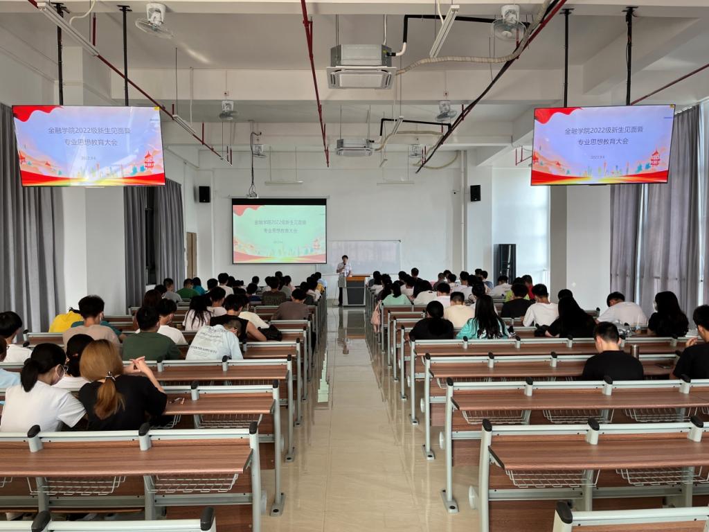 金融工程系副主任荣佳、经济与金融系副主任魏攀、金融科技系副教授李战国,分别为22级新生进行了专业教育。