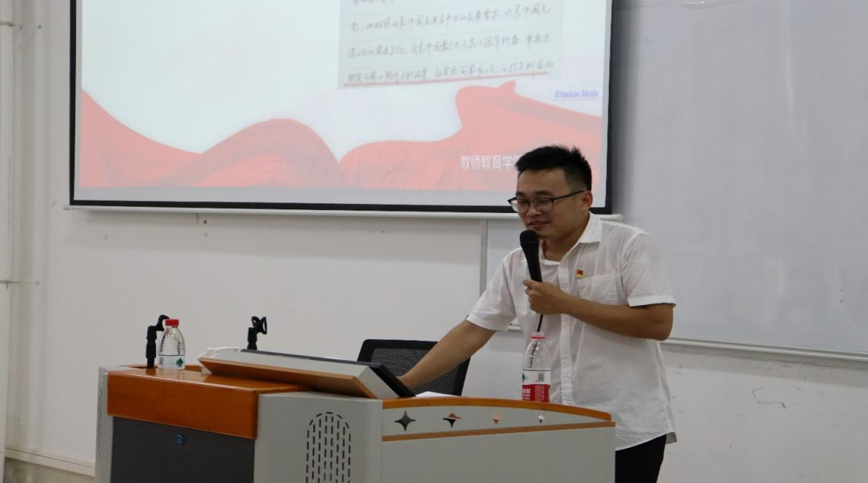 会议伊始,主讲人李师同志以“入党”为切入点,向同学们介绍了党的历史,分享了优秀党员的事迹,激发了同学们的爱国之情,教育引导同学们积极向党组织靠拢。他从入党条件和标准、端正入党动机、学习党员权利义务、入党程序、发展党员、党籍管理等方面出发,对入党流程做了详细介绍。同时对同学们提出,作为师范生要以身作则,时刻以党员的标准严格要求自己,立大志、明大德、成大才、担大任,增强“四个意识”、坚定“四个自信”、做到“两个维护”,做学为人师、行为世范的“四有”好老师。
