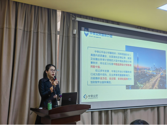 招聘前,中审众环进行了宣讲,王兵副所长从事务所发展历程、业务类型、客户特点、人员需求、工作内容、发展前景及工资待遇等方面进行了详细的介绍。王所提到,中审众环是首批大型的事务所之一,在全国拥有三十多家分支机构,其中广东分所是华南区域最大的分支机构之一。王所着重向同学们介绍了中审众环的工作环境及职业发展前景,强调中审众环重视员工培训及员工福利,是一支真正符合中国国情,并具有行业领先优势的人才团队。
