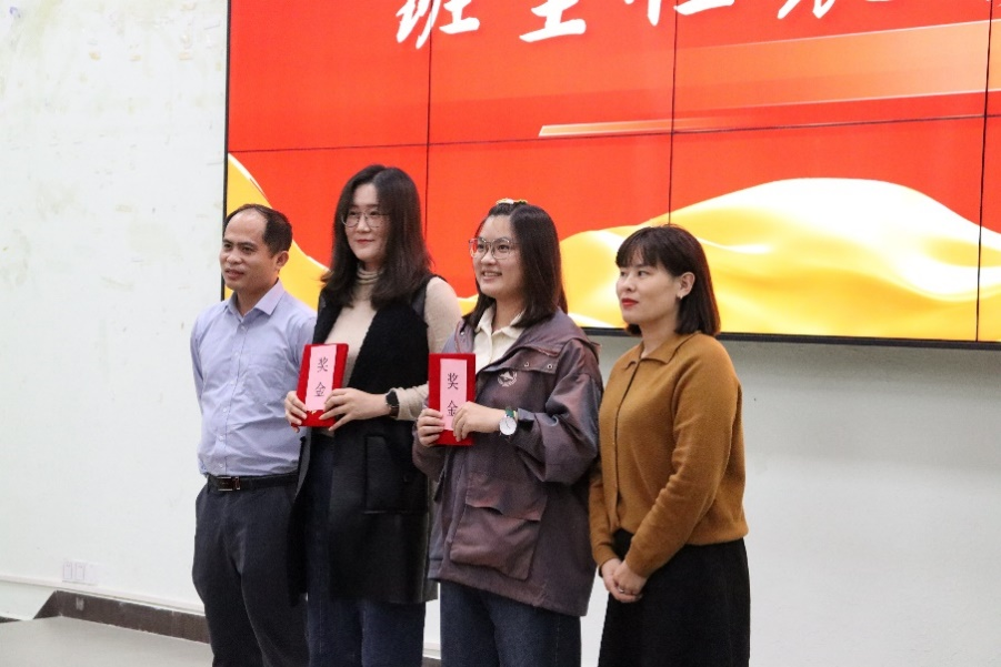 接着副院长谭建生宣读《伟德体育关于表彰第一届优秀班主任决定》《伟德国际betvlctor关于表彰第一届优秀班主任的决定》。决定对获得“伟德体育第一届优秀班主任”称号获得者杨慧、袁小婷给予表彰及奖励,由学工部部长许娜、人文学部副主任陈少鸿为两位班主任颁发了荣誉证书和奖金。谭建生院长希望受到表彰的老师,以此为新的起点,再接再厉,再立新功。同时鼓励全体老师以他们为榜样,不忘立德树人初心,牢记为党育人、为国育才的使命,全员全程全方位育人。