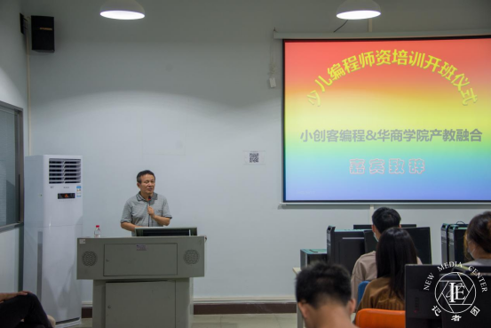 华商学院数据科学学院常务副院长赖庆教授在致辞中提到,开展产教融合项目意义重大,作为我校唯一的一个工科学院,在实施编程相关的项目上,数据科学学院的同学们具有得天独厚的优势,通过项目的实施,除了对同学们个人的实践能力和素质培养有积极作用,同时还有利于提高学院的教学质量。在社会服务层面,培养了一批满足社会对少儿编程需要的人才,实现多方共赢。