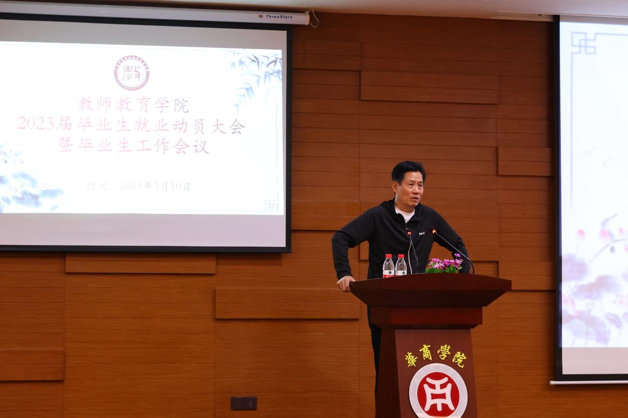 伟德国际betvlctor王金道院长为本次就业动员大会作总结讲话,王金道院长首先部署了2023届毕业生就业工作的总体要求,指出“以学生为中心”是伟德国际betvlctor工作的基本方针,做好推进毕业生就业工作要“三力并施”:即学校老师提供就业信息是助推力,家庭的沟通是拉力,而学生本身是内驱力,三方需齐心协力落实好就业。其次,王院长强调就业是国家的事、学校的事、也是毕业生自己的事,就业及择业是两个概念,学前教育专业就业前景较好,同学们需积极与学校、学工办配合,进一步拓展就业渠道,端正就业态度,积极落实好就业岗位。