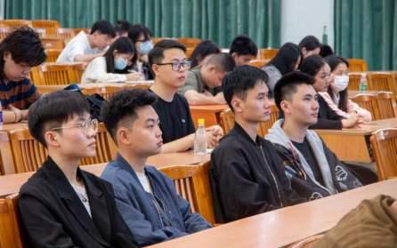 管理学院2023届毕业生陈浩华分享自己的求职经验和求职技巧。陈浩华师兄分享了有关确定自身求职方向的技巧,指导同学们如何制作优质的简历并在面试中充分展现自己。同学们认真倾听并记录了重点。