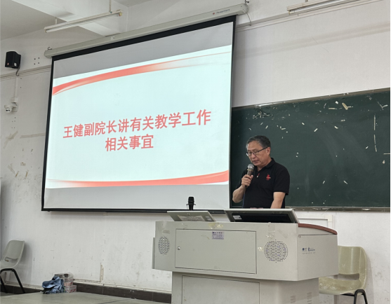 王健副院长从教学管理、教学规范、毕业论文指导、人才培养方案修订、一流专业建设、实践教学等多个方面做了细致安排,要求全体教师要认真研究学校的教学管理制度,严格要求自己,积极发展精品课程、一流课程,更好地为学院发展服务。