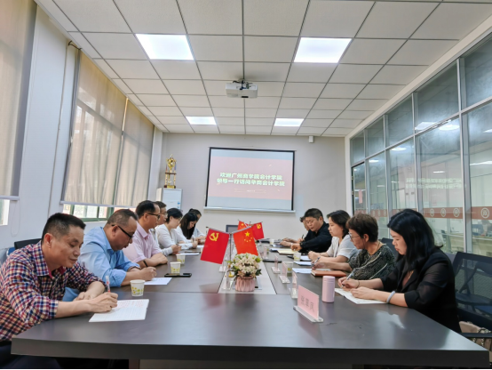 2023年4月6日,广州商学院会计学院副院长陈德余,会计专业负责人彭文华,审计专业负责人杨玉国,管理会计教研室主任宋敏,实践教研室主任范时云,办公室主任罗静,教务员陈婉婷一行来我校会计学院交流访问,会计学院副院长杨旻、周书域,会计系主任崔莉,审计系主任郭秀珍,税务系主任张翠凤,财务系副主任姚永红,华商云会计产业学院常务副院长杨咏梅,教务办主任宋超在学院会议室接待了广州商学院会计学院领导及老师一行并参加交流会,交流会由会计学院副院长周书域主持。