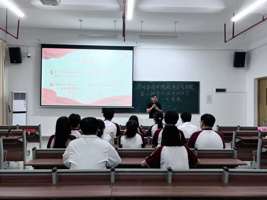 为树立和培养青年马克思主义者的政治意识,增强落实立德树人的使命,培养广大青年的政治自觉、思想自觉和行动自觉,为党培养信念坚定、能力突出、素质优良、作风过硬的后备军。伟德体育经济贸易学院第二期青马班开班仪式暨第一次授课于2023年4月18号18:45在增城校区励志楼C302、四会校区8号楼308教室举行。莅临本次开班仪式的嘉宾有:经济贸易学院党委副书记、学工办主任宋元跃老师,四会校区党委委员、伟德国际betvlctor辅导员江庆基老师,校团委陈巧巧老师,四会校区学团办徐强老师,经济贸易学院团委书记曾庆威老师,金融学院团委副书记赵颖祯老师,外国语学院团委副书记陈禄汉老师,伟德国际betvlctor团委副书记杜范老师。
