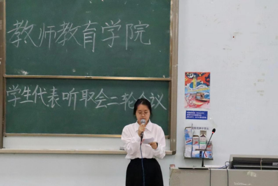 针对以上提议,学生会主席团成员陈泳思首先肯定了学生代表们的细微观察能力,发现问题敢于提出意见的态度。随后她表示,学校在未来的发展中,将一如既往地重视学生的意见和建议,不断完善学校的各项制度和设施,为学生提供更好的学习和生活环境。同时,她希望在未来会有越来越多的同学敢于发现问题并提出自己的想法。