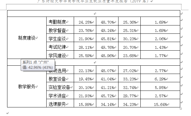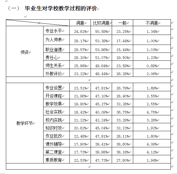 (一)毕业生对学校教学过程的评价