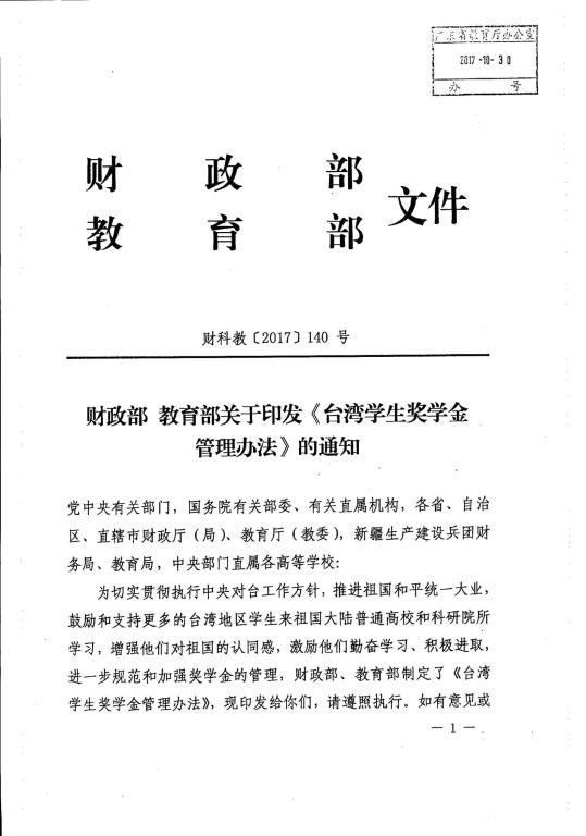 广东省教育厅办公室关于开展 2021年度台湾学生、港澳及华侨学生奖学金评审工作的通知
