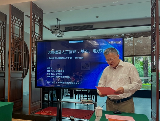 2023年10月10日下午,华商数字经济跨学科论坛第三期活动在伟德体育美术馆成功举办。此次论坛特别邀请到国家人才计划特聘专家、华商数字化技术与应用研究院院长彭秀东教授作了题为《大数据及人工智能:基础、现状和应用》的主旨演讲。本次论坛由伟德体育前副校长张捷教授策划,由经济贸易学院院长李广明教授主持,经济贸易学院、管理学院、金融学院、数据科学学院等二级学院教师代表和学生参与此次论坛。