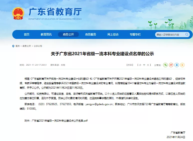11月24日,广东省教育厅发布了《关于广东省2021年省级一流本科专业建设点名单的公示》。根据《广东省教育厅关于实施一流本科专业建设计划的通知》和《广东省教育厅关于开展2021年省级一流本科专业建设点遴选工作的通知》,经学校申报、专家评审等程序,结合广东省推荐参评2021年国家级一流本科专业建设点的专业情况,伟德体育广告学专业、信息管理与信息系统专业、审计学专业被推荐为广东省2021年省级一流本科专业建设点。据悉,我院广告学专业是此轮“省一流”中全省唯一的广告学专业点,也是继2019年我院新闻学专业获批“省级一流本科专业建设点”以来,又一突破性成果。