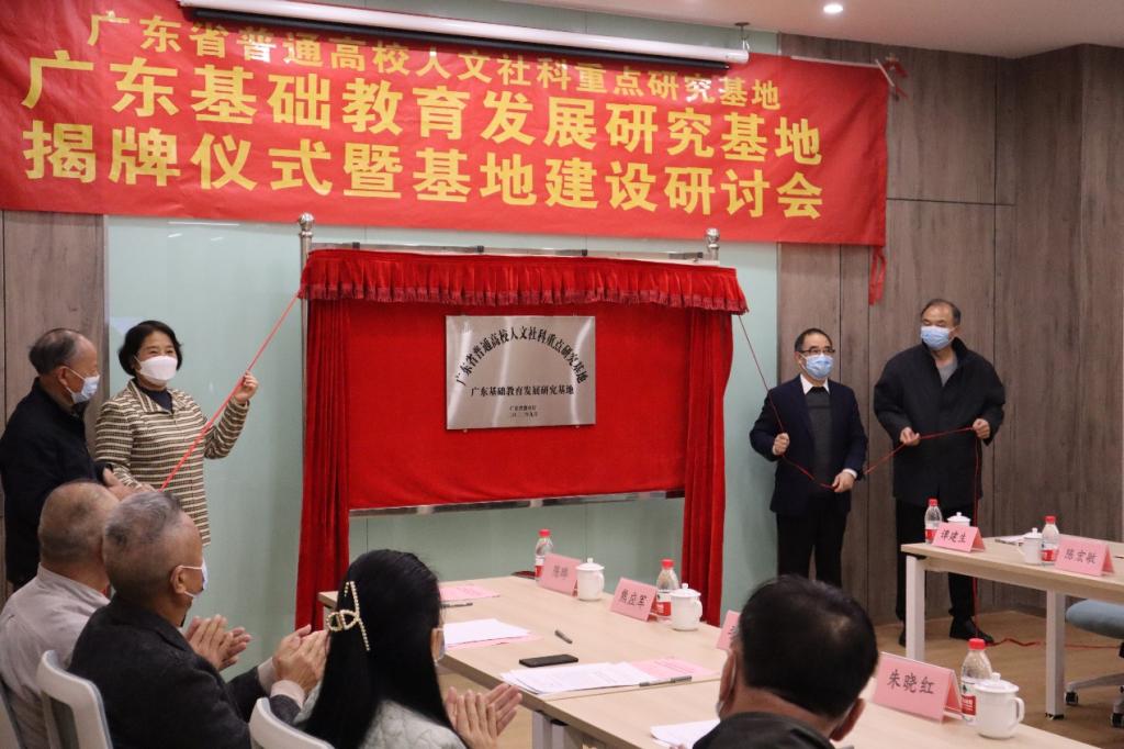 郭银华执行校长、支戈壁副校长、王列耀副校长和扈中平院长共同为广东基础教育发展研究基地揭牌。