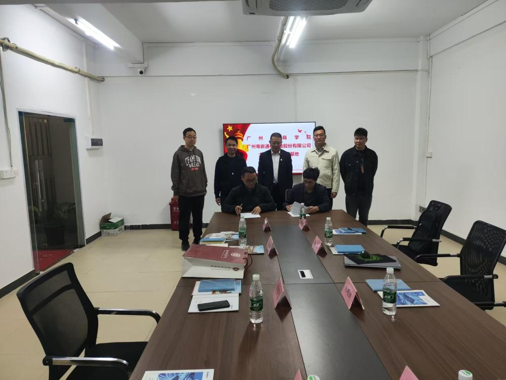 本次签约仪式在广州粤嵌通信科技股份有限公司(从化分公司)举行。华商学院代表团由党委副书记、纪委书记、副校长吕峻闽领衔,包括人工智能学院党委书记、副院长杨波,党委副书记、副院长陈洋广,以及产教融合专员徐胜超等。粤嵌公司总经理李春飞、人才孵化研究院院长冯宝祥等公司高层领导出席,共同见证了这一重要时刻。