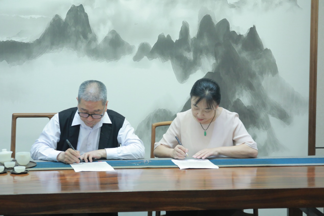 朱晓红院长与聚璟轩玉雕设计工作室负责人许群豪签订校企合作协议